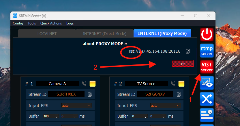 To enable proxy mode for the RIST protocol, follow these steps in order: